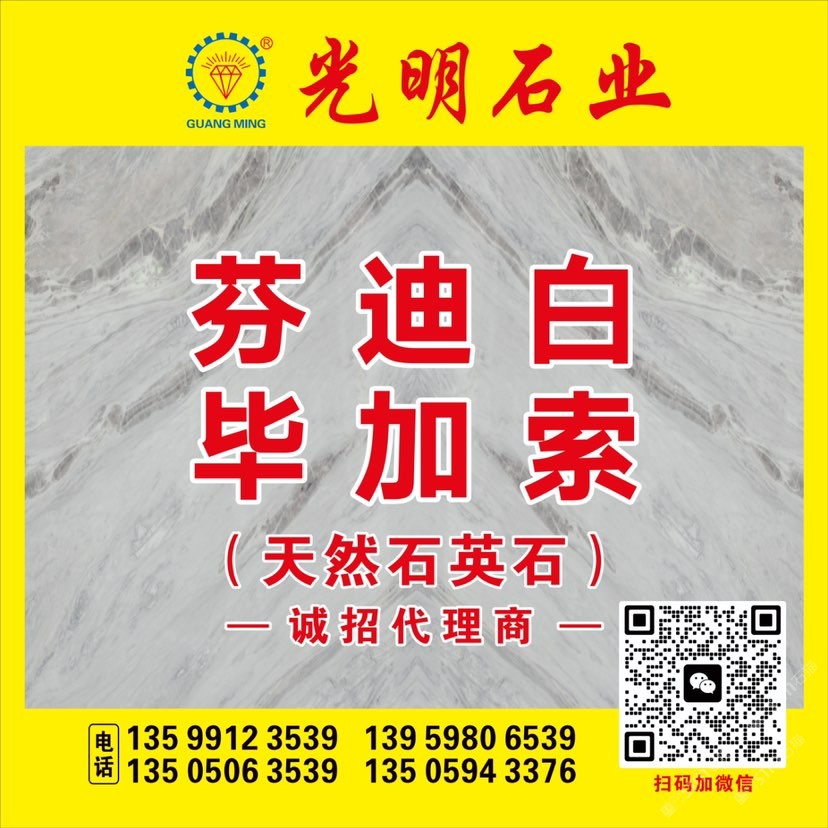 公司主要生產加工國內外大理石、花崗巖、工程板、臺板、異形線條及地鋪石系列,目前擁有一系列先進生產設備,具備加工優(yōu)質石材的能力,可加工各種規(guī)格平板、弧形及異形板,承包國內外多座大理石、花崗巖礦山,荒料庫存達數十萬立方,大板庫存量達幾十萬平方,可承接國內外各種大型工程。多年來先后在北京、上海、浙江、天津、廣東、江蘇、湖北、四川、新疆、江西等地設立分公司,健全了公司的銷售網絡,使光明的品牌深入人心,產品深得廣大顧客的一致好評。良好的信譽也使公司先后榮獲“文明經營戶”、“誠信單位”、“明星企業(yè)”、“石材之星”、“全國質量信得過產品”、“全國質量服務消費者滿意企業(yè)”、“守合同、重信用單位”的榮譽稱號,并通過了DHSAS18001健康管理體系認證、GB/TI9001-2000-ISO9001:2000質量標準和ISO14001:2004環(huán)境管理體系認證。\\\\\\\\\\\\\\\