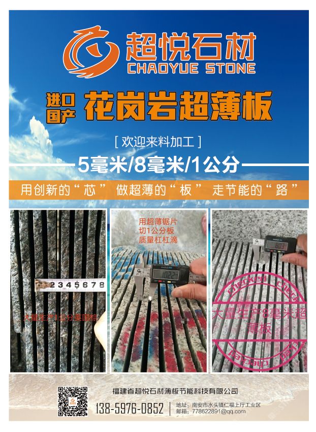 是一家專注于生產(chǎn)、研發(fā)1CM超薄板/2.5CM干掛板的花崗巖研發(fā)型企業(yè)。秉承“用創(chuàng)新的芯、做超薄的板、走節(jié)能的路”的發(fā)展理念,深受國(guó)內(nèi)知名地產(chǎn)公司和幕墻裝飾公司的青睞和認(rèn)可,已與多家知名地產(chǎn)幕墻裝飾公司簽約長(zhǎng)期戰(zhàn)略合作。\\