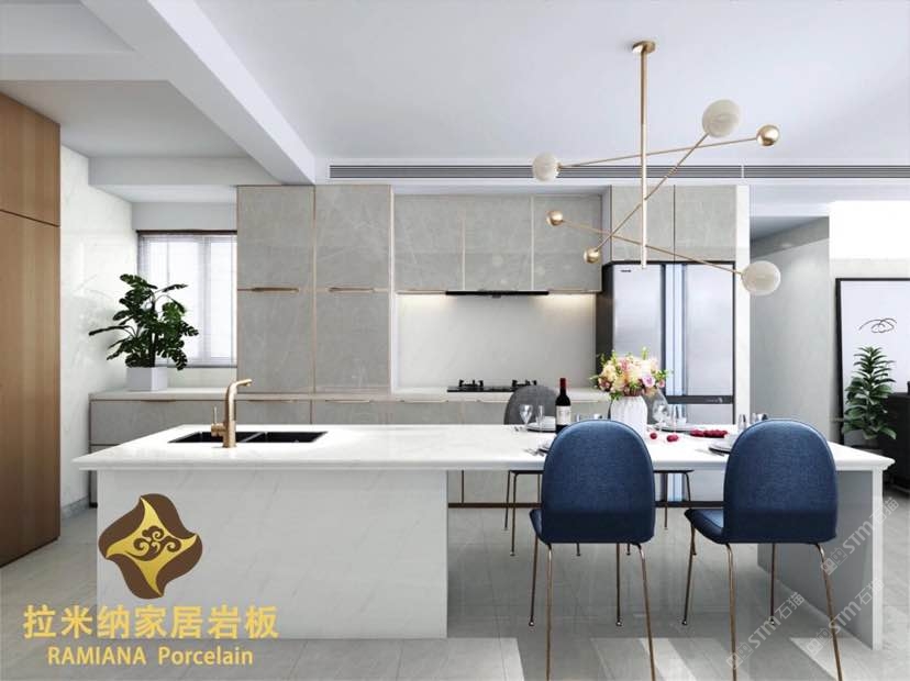 拉米納家居巖板(RAMIANA Porcelain),硬度堪比石英石,亮度高,抗污、耐熱、防刮、耐用、易清潔。