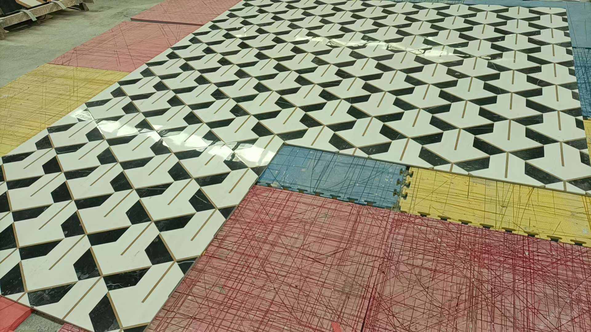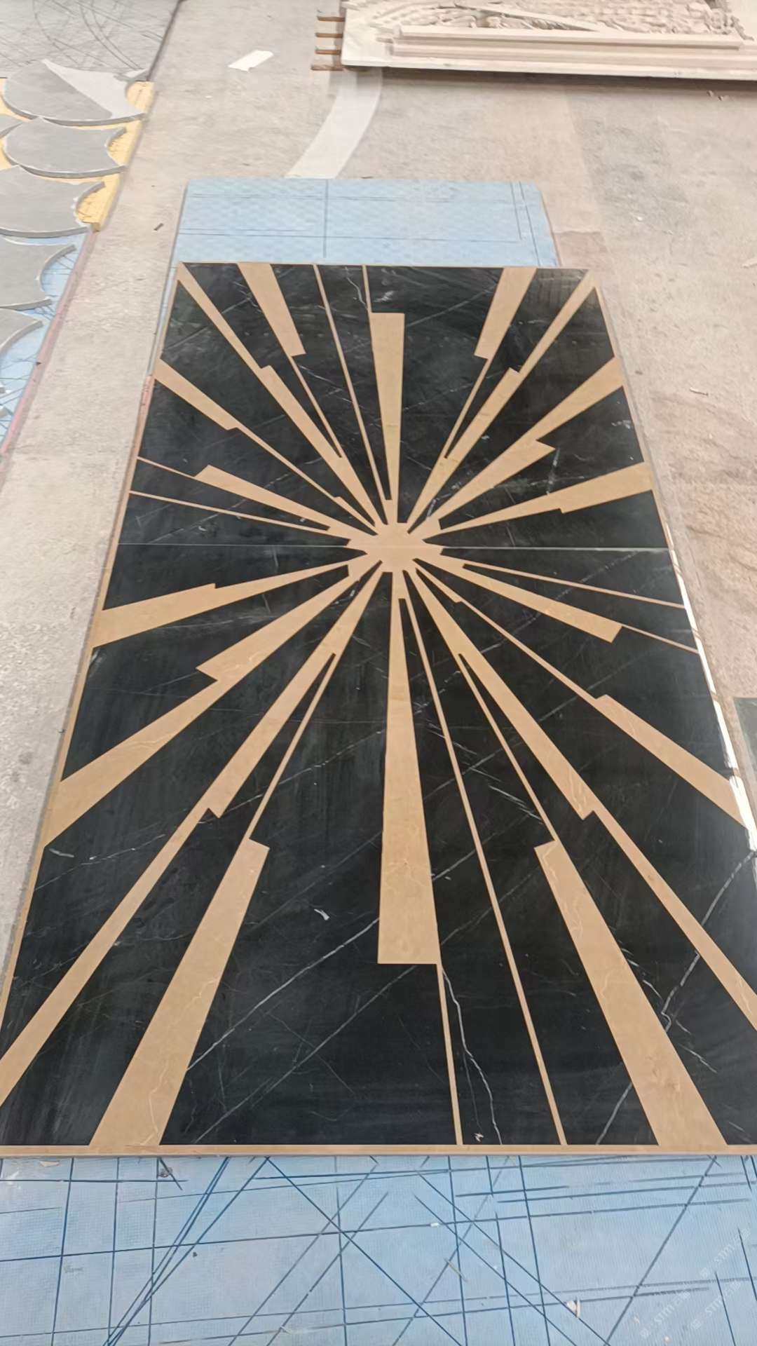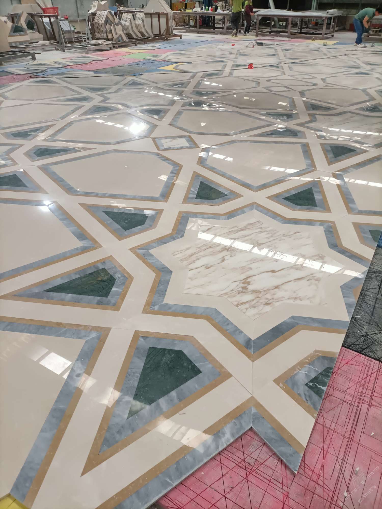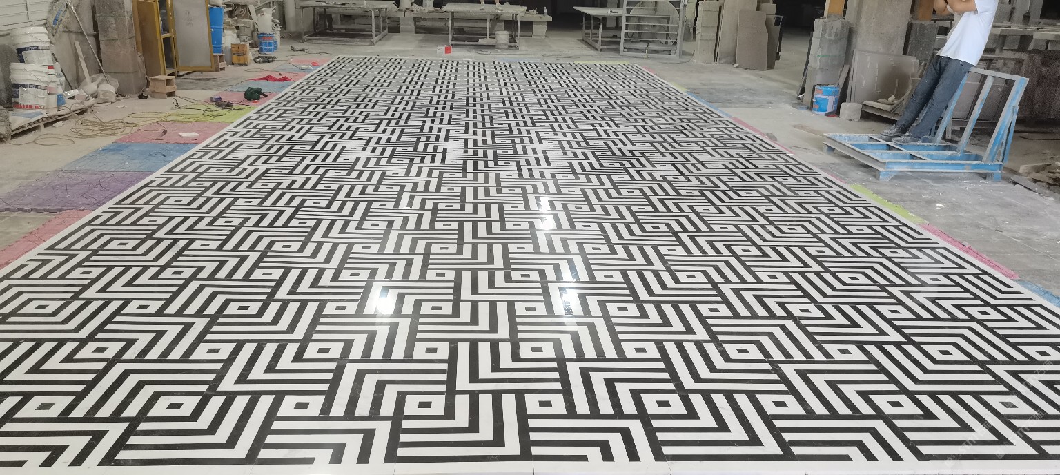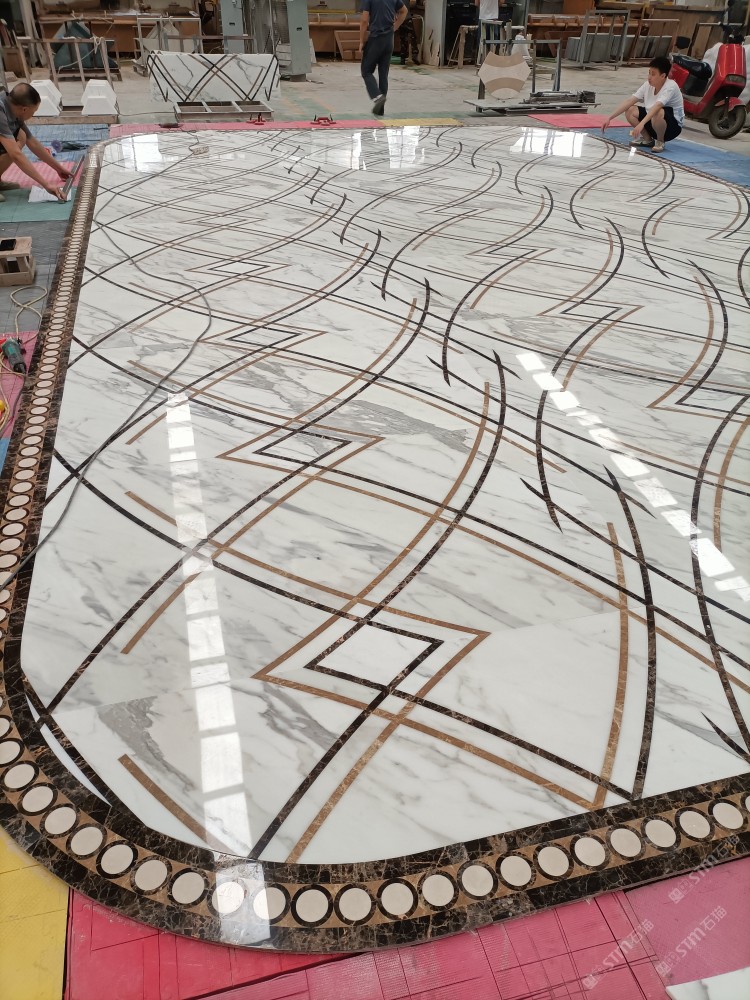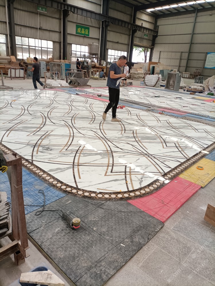 公司水刀拼花生產線:擁有6臺大型水刀設備,拼花年產量達10000多平方米。水刀師傅從業(yè)時間久,誠信務實,質量好!所生產的工藝拼圖暢銷全國及世界各地,是別墅建筑至善至美的選擇。