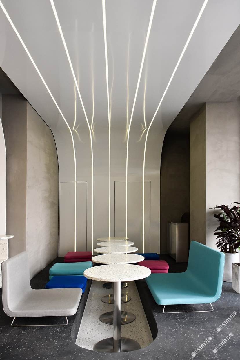發(fā)布信息: 整個(gè)概念圍繞著提供健康食品的理念,通過采用軟墊、長椅以及可容納多人的可臥躺放松的空間,提供形式豐富的非正式的座位設(shè)置。每一個(gè)房間都具有不同的功能形式??Х葟d、餐廳、酒吧以及外部庭院,均由中央廚房提供服務(wù)并沿著一個(gè)公共走廊組織串聯(lián),此外還具有一個(gè)開放式展示烘焙區(qū)。在更小的空間里我們?nèi)菁{了一處衛(wèi)生間,一間小辦公室與兩間儲存室/機(jī)房。該項(xiàng)目的策略為在碎片化的場地基礎(chǔ)上進(jìn)行有效的組織,并且打造出可以適應(yīng)多種新功能的空間場所。