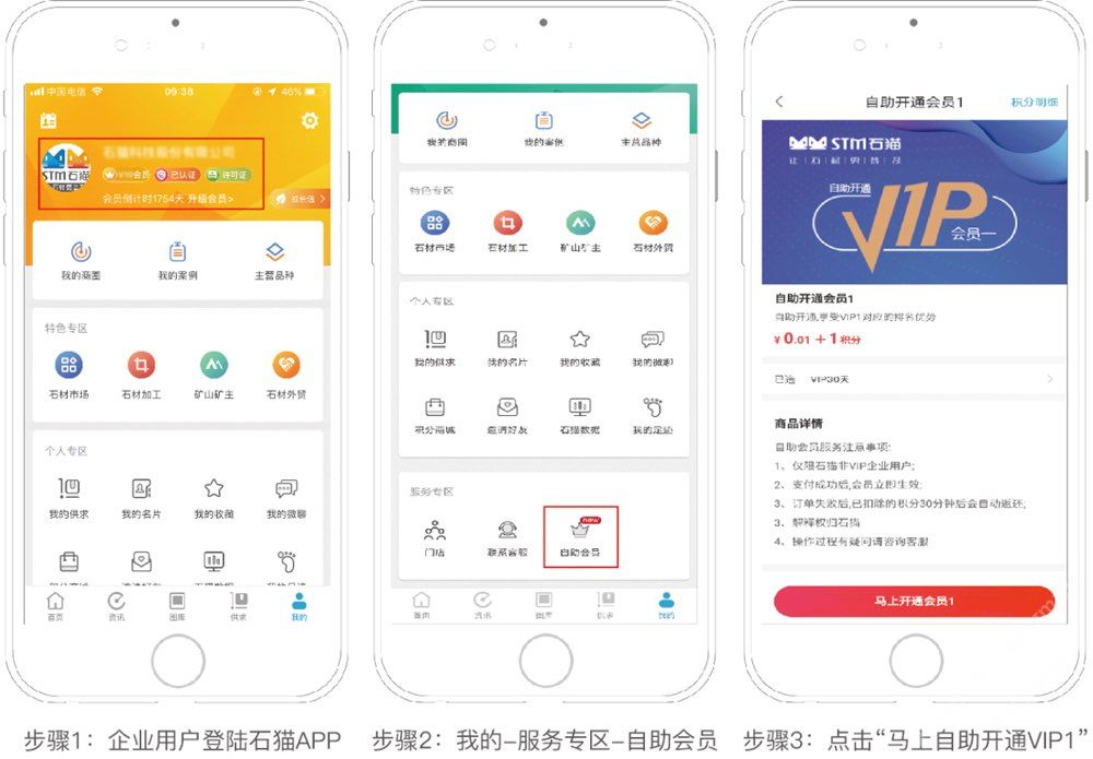 企業(yè)用戶自助開通VIP1會(huì)員,不用聯(lián)系客服,不用聯(lián)系市場(chǎng)人員,在“石貓-積分商城-VIP會(huì)員服務(wù)”自助購買支付即可開通。