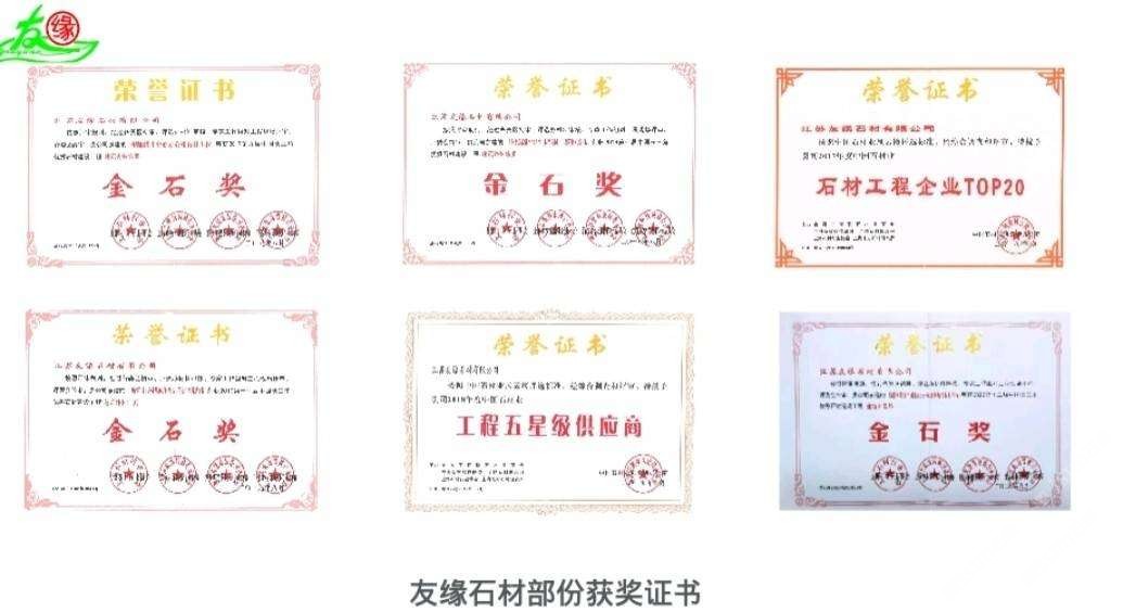 發(fā)布信息: 友緣石材成立于1998年至今。是一家集石材礦山開采、加工批發(fā)、工程設(shè)計(jì)、安裝施工、售后服務(wù)為一體的石材企業(yè),承接各類石材裝飾工程及加工各種異型工藝石材。 友緣石材精品加工中心、精品倉儲(chǔ)中心位于江蘇省南通市洋口港石材產(chǎn)業(yè)園區(qū),占地面積約28000平方米,生產(chǎn)中心集石材荒料加工,精品大板拋光,工程異形石材加工等一體化生產(chǎn)功能,具有國內(nèi)外先進(jìn)加工設(shè)備,如鉆石切割機(jī)、單邊鋸切割機(jī)、繩鋸切割機(jī)、全自動(dòng)板材拋光機(jī)、真空烘干流水線設(shè)備、紅外線切割機(jī)、全自動(dòng)化線條機(jī)、磨邊機(jī)、水刀切割機(jī)、仿形機(jī)等等,具備先進(jìn)的加工能力和豐富的施工經(jīng)驗(yàn)。