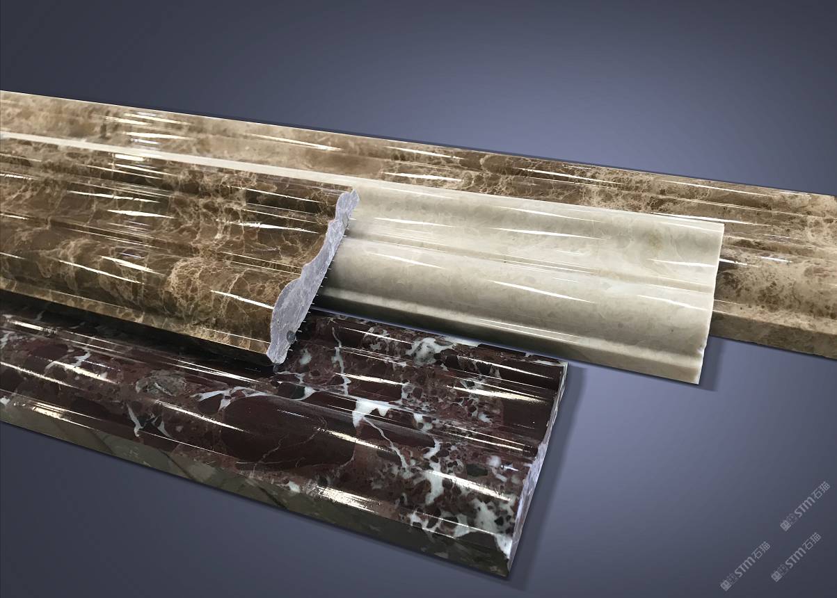 描述:裝飾中經(jīng)常用一些異型石材線條以達到使用美觀的目的。石線通常用天然大理石、花崗巖、玉石加工成單件或者多件組合拼接,形成整體的連續(xù)的石材線條。也有用模具將人造石壓制而成。