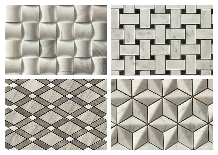 描述:石材馬賽克是將天然石材開介、切割、打磨成各種規(guī)格、形態(tài)的馬賽克塊拼貼而成的馬賽克,是最古老和傳統(tǒng)的馬賽克品種,最早的馬賽克就是用小石子鑲嵌、拼貼而成,石材馬賽克具有純自然、天然的質(zhì)感,有非常自然的天然石材紋理,風(fēng)格自然、古樸、高雅,是馬賽克家族中檔次最高的種類,根據(jù)其處理工藝的不同,有啞光面和亮光面兩種形態(tài),規(guī)格有方形、條形、圓角形、圓形和不規(guī)則平面、粗糙面等。用這種材料裝飾墻壁或者地面,既保留了天然石材本身的質(zhì)樸感,又使圖案豐富。 天然大理石馬賽克是采用機(jī)切成很小顆粒,純手工拼制而成,由于馬賽克材料具有耐久性,不會因環(huán)境時間而剝落、變色,屬于高檔裝飾產(chǎn)品,色澤純正,典雅大方,具有經(jīng)久耐用、永不褪色的特點(diǎn)。廣泛應(yīng)用于各類建筑裝修、室內(nèi)裝飾,是理想的高檔裝飾產(chǎn)品。